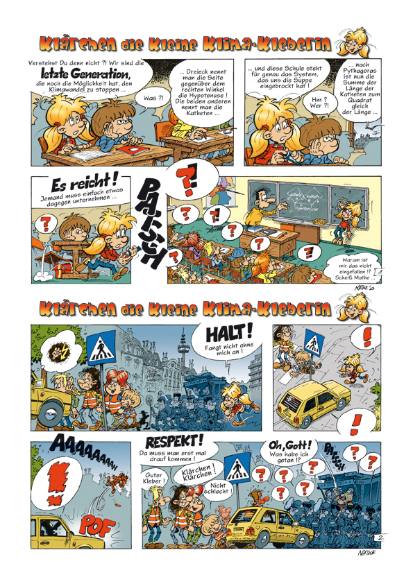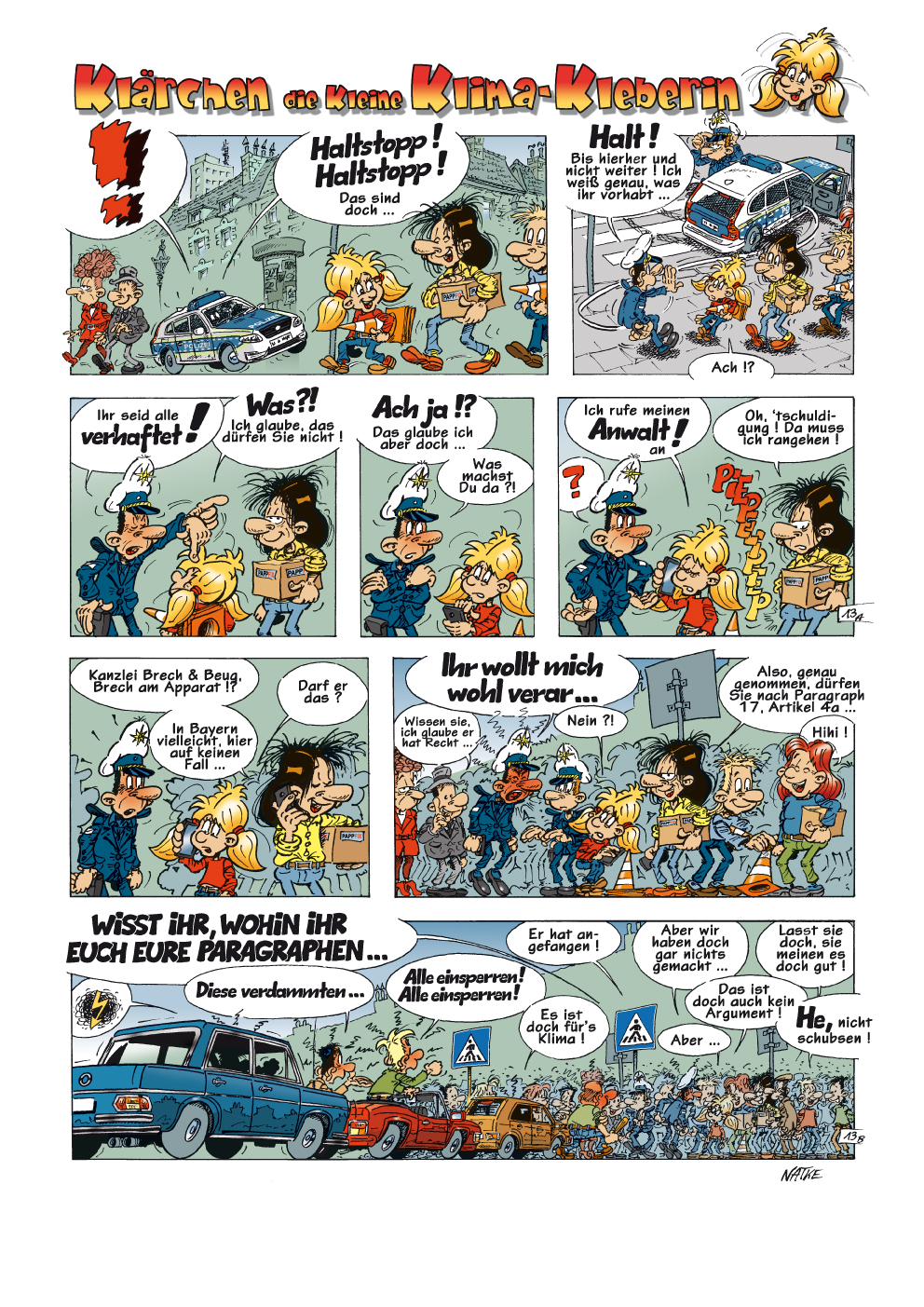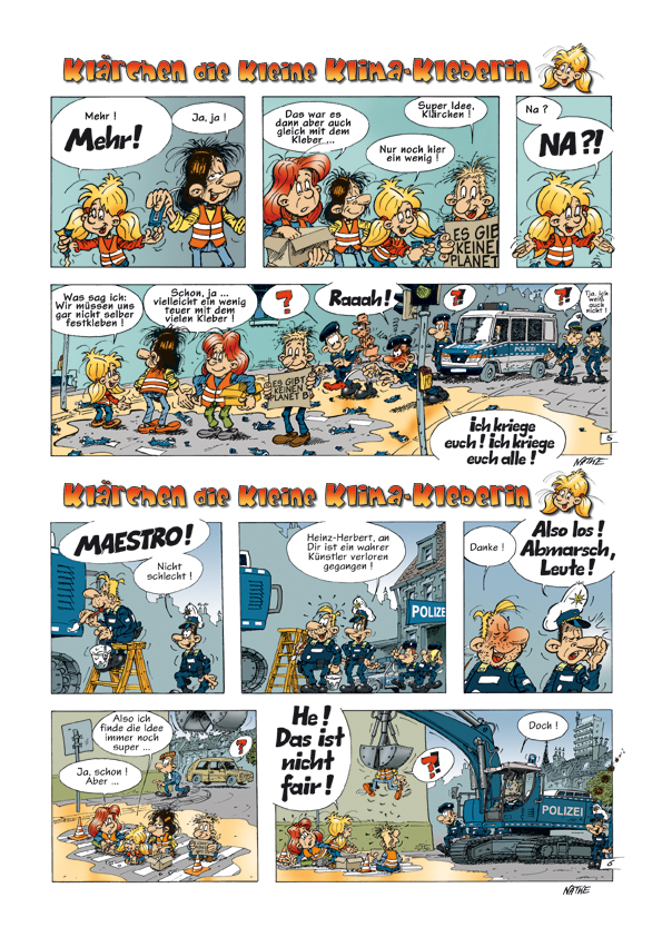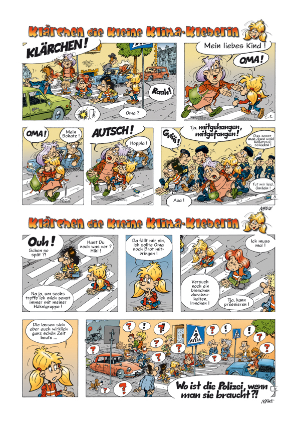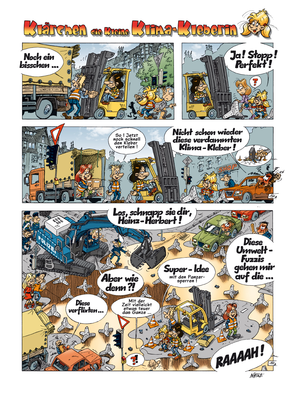 Inspiriert durch die Aktionen der "Klima-Kleber" der Letzten Generation entwirft Natke 2023 die Figur "Klärchen die kleine Klima-Kleberin". Einige wenige der ersten Seiten erscheinen im Magazin Graphica, das in der bisherigen Form aber nicht mehr erscheinen wird.