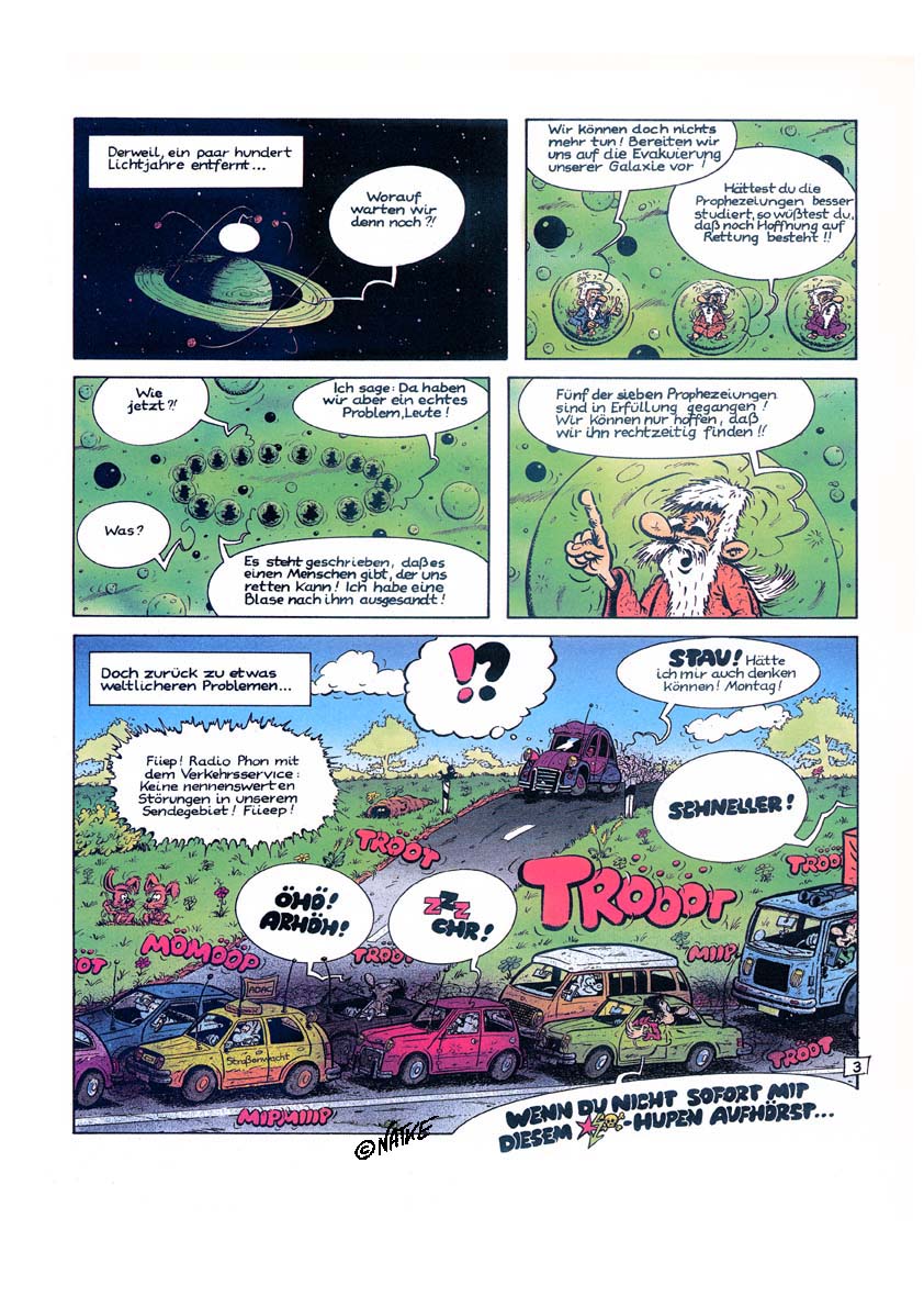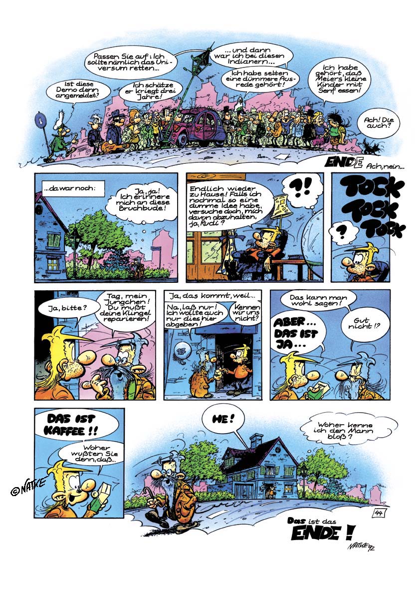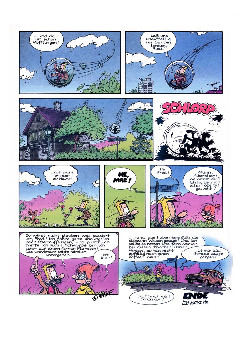 1990 entstand die Geschichte "MacRogers - Die sieben Prophezeiungen". Natke griff eine Idee aus der Kurzgeschichte auf. Dort träumte der "Held" noch davon, in einer Art Seifenblase durch den Weltraum zu reisen, jetzt tat er es wirklich. Ein paar Außerirdische meinen MacRogers sei der Retter des Universums und schicken ihm eine Blase. MacRogers hat aber im Grunde nur ein Interesse: Eine Tasse Kaffee. Die Geschichte erscheint als Vorabdruck in U-COMIX ( ab Nr. 123 ) in Schwarzweiß. 1991 erscheint das Album beim alpha-comic verlag in Farbe.