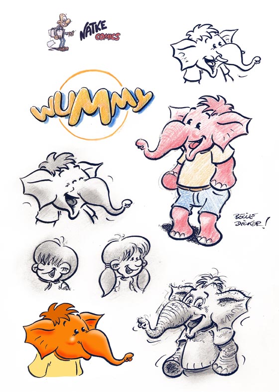 Folgende Zeichnung, die auch auf der Startseite als Link zu "Sonstiges" erscheint, entstand als Teil eines Skizzenblattes für die Figur Wummy für "Elefantenschuhe". Eine Zusammenarbeit kam letztlich aber nicht zustande.