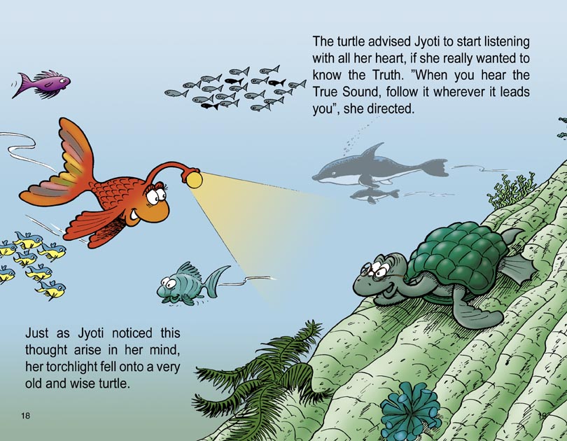 "Jyoti And The Great Fish Beyond" ist eine Geschichte von Sn. Samadhimurti, inspiriert durch Swami Niranjanananda Saraswati und die Mandukya Upanishad, die Natke 2009 illustrierte.